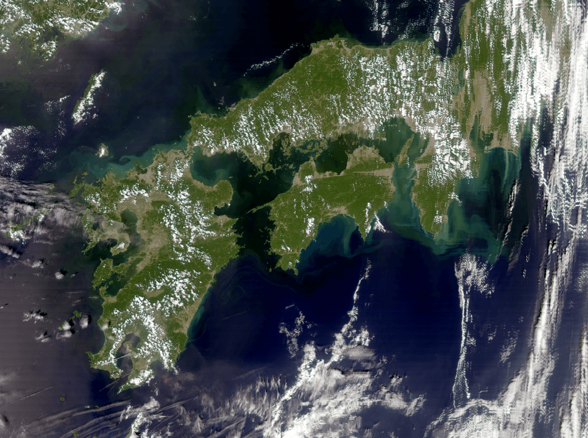 気候変動や海の状態を知ることは非常に重要で、現代社会には不可欠です。地球規模の情報を得るために、“リモートセンシング”と呼ばれる、宇宙から地球を測定する技術が使われています。右の写真はリモートセンシングの一例で、広い範囲の海の状態を詳細に知ることができます。これにより、気象予報や海洋学、漁業などに重要な情報を得られます。私たちは情報処理技術や情報の活用に関する研究を行っており、衛星開発プロジェクトにも参画しています。