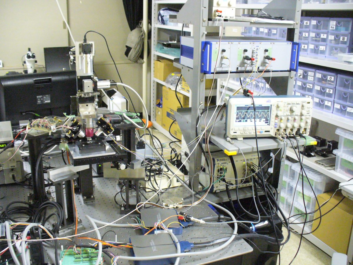 光を使うと、触れることなく、壊すことなく精度よく物の動きや性質を測定できます。そのような計測技術は科学の発展や産業技術の発展に大きく貢献してきました。私たちは、新しい原理や新しい方法の光計測技術の研究をしています。写真はそのために開発した装置です。装置開発から計測までを一貫して行っています。
