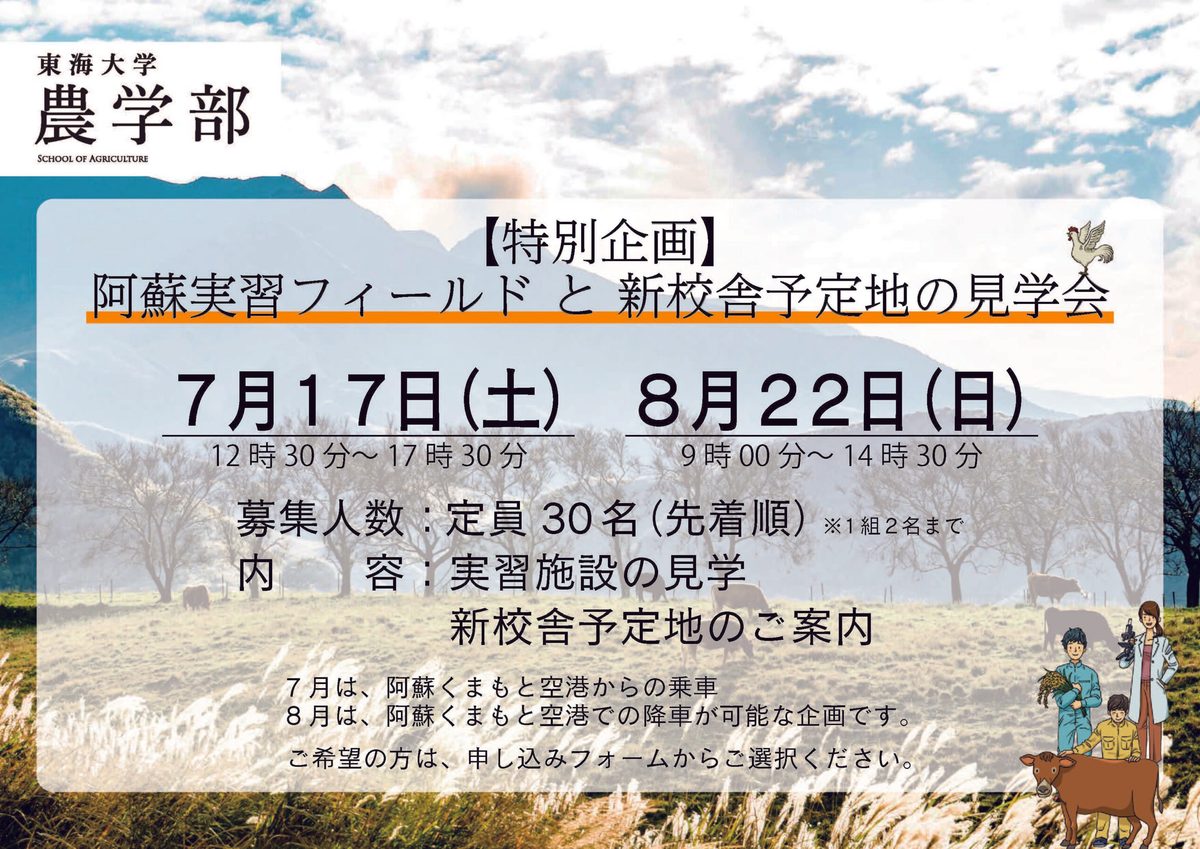 阿蘇実習フィールドと新校舎予定地の見学会を7月17日(土)と8月22日(日)に開催いたします。