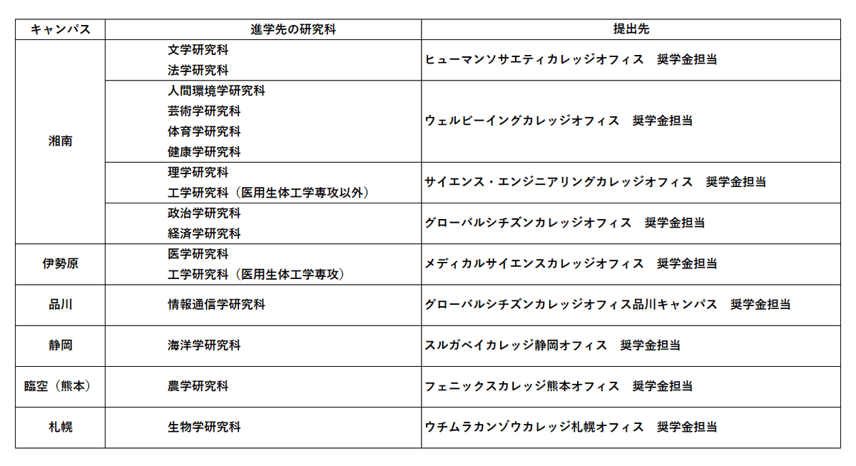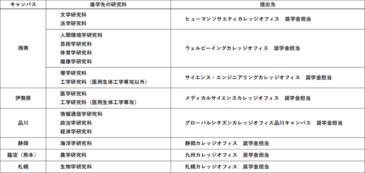 - 日本学生支援機構の修士段階を対象とした月額50,000円または88,000円の第一種奨学金と同様の家計基準および学業成績基準を満たす者