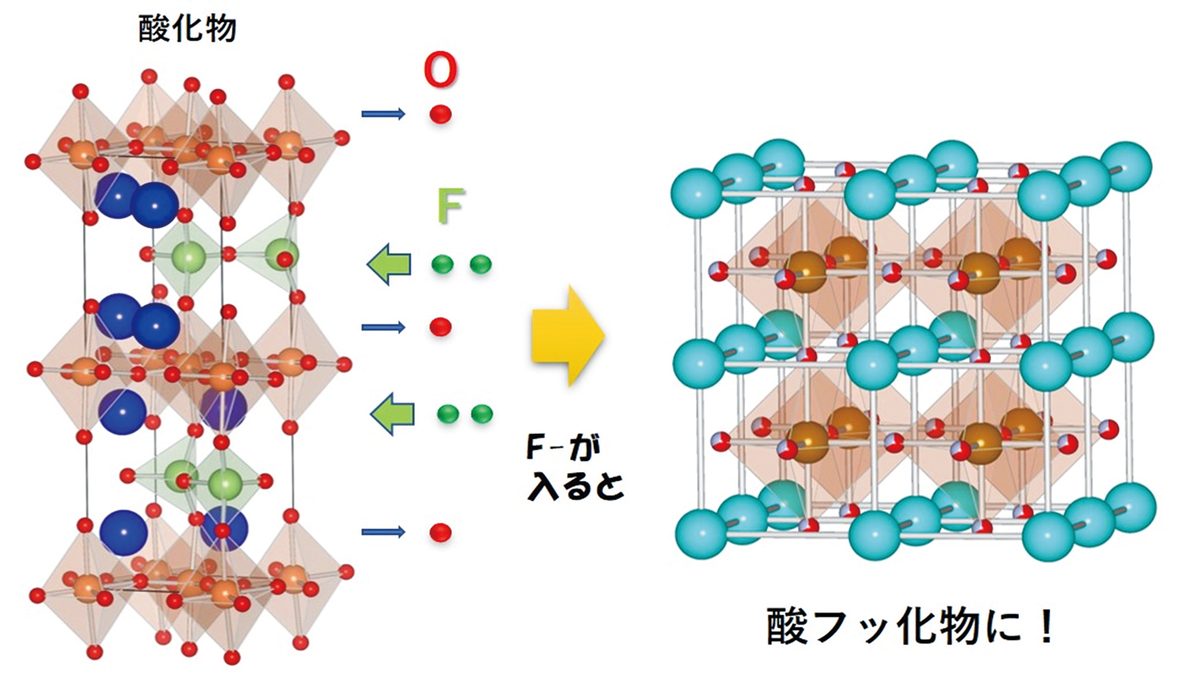 無機金属酸化物は電子機器の材料として利用されており現代社会には欠かせない材料の一つです。一方、これまでに多くの化合物が合成されており、これら酸化物から優れた特性を持った新しい材料を探索することは容易ではありません。そこで、当研究室では、酸化物に他の陰イオンを導入した複合アニオン化合物に着目し、新物質の探索に取り組んでいます。