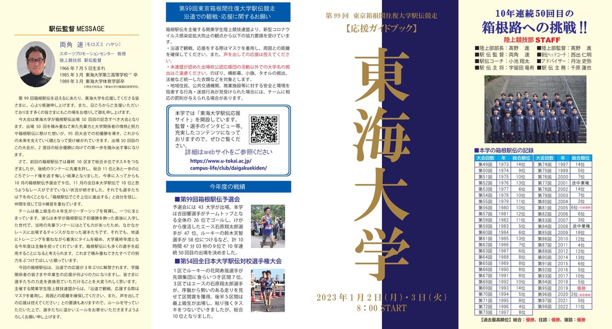 2018年度の箱根駅伝で初優勝を果たし、翌年も準優勝と上位に入りましたが、以降5位、10位、11位、15位と悔しい結果が続いています。この悪い流れを打破するべく、今年度は「復活の狼煙(のろし)〜返り咲け東海〜」をスローガン掲げました。駅伝主将の越陽汰(体育学部3年次生)が中心となり、私生活から自分たちを見直した結果もあり、チームの軸である花岡寿哉(情報理工学部2年次生)や兵藤ジュダ(体育学部2年次生)ら2年次生を中心に勢いがつき、多くの選手が自己記録を更新してくれています。彼らに刺激を受けた多くの3、4年次生も奮起してチームを引っ張ってくれています。1年次生も大学生活に順応して、早くもトップチームで練習を積んでいる選手も出てきています。10月の箱根駅伝予選会は10位で本戦出場権を獲得しました。一見すると低い順位にも思えますが、ほとんどの選手が事前に決めたペース通りでゴールできており、選手たちの成長を感じる機会となりました。11月の全日本大学駅伝は下級生中心のメンバーで臨みましたが、箱根駅伝に向けて貴重な経験を積んでくれたと感じています。一昨年度は12位、昨年度は10位と悔しい結果が続いていた中、一桁順位でゴールできたのは収穫と言えます。箱根駅伝でのシード権獲得も現実味を帯びてきたと手応えを感じました。
