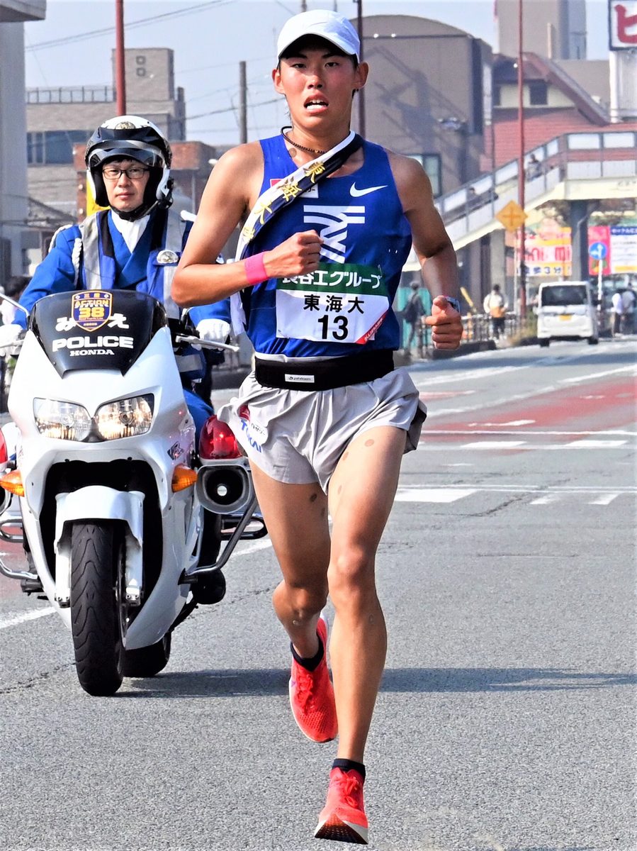 2018年度大会での東海大学の総合優勝を見て、自分もここに入って箱根に挑戦してみたいという気持ちは持っていました。高校時代に比べて練習量は増え、質も上がっています。また、高校よりも内容を自分で考えて調節するなど自由度が高いので、自分でしっかり考えてやらないといけないという思いで取り組んでいます。自分はけがをしにくいことが強みなので、練習で走る距離が延びることは問題ありません。ここまでもしっかりと距離を踏めています。