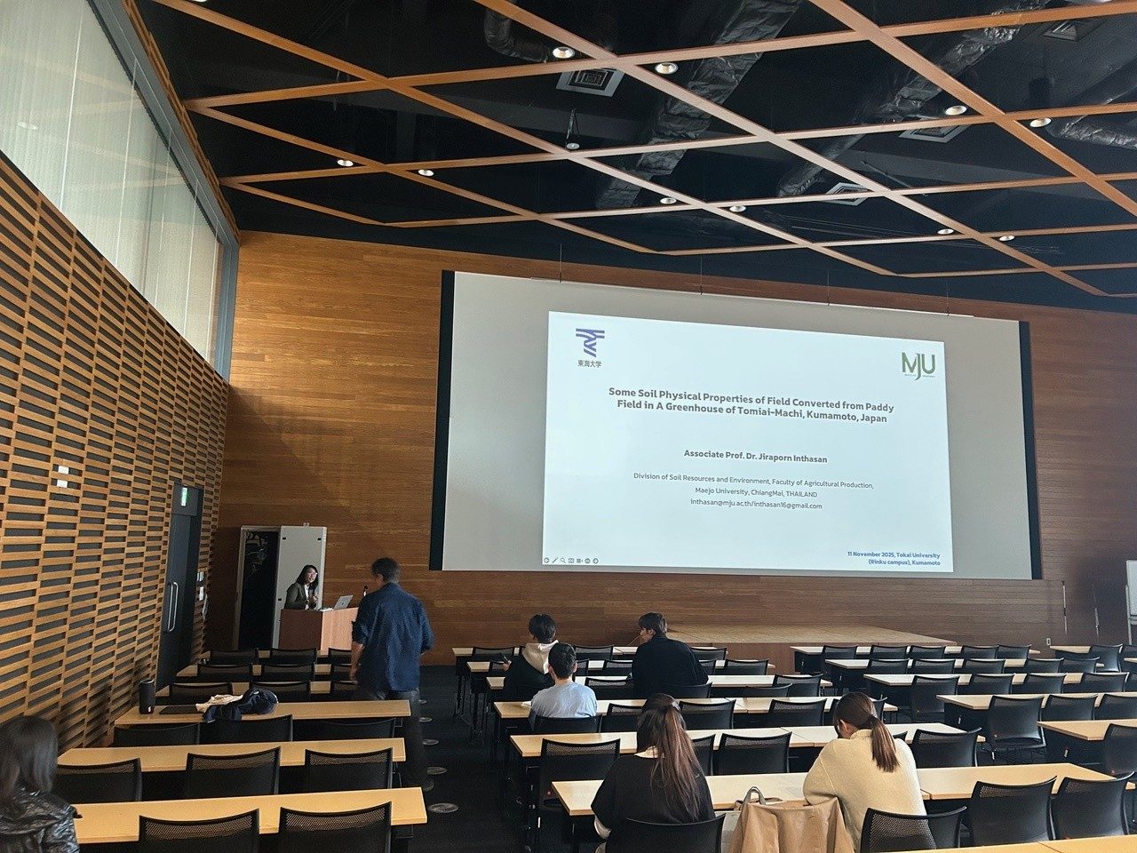 本成果発表は、メジョー大学と本学の協定校交換留学プログラムの一環として行われ、お二人は10月13日から約1月滞在されました。