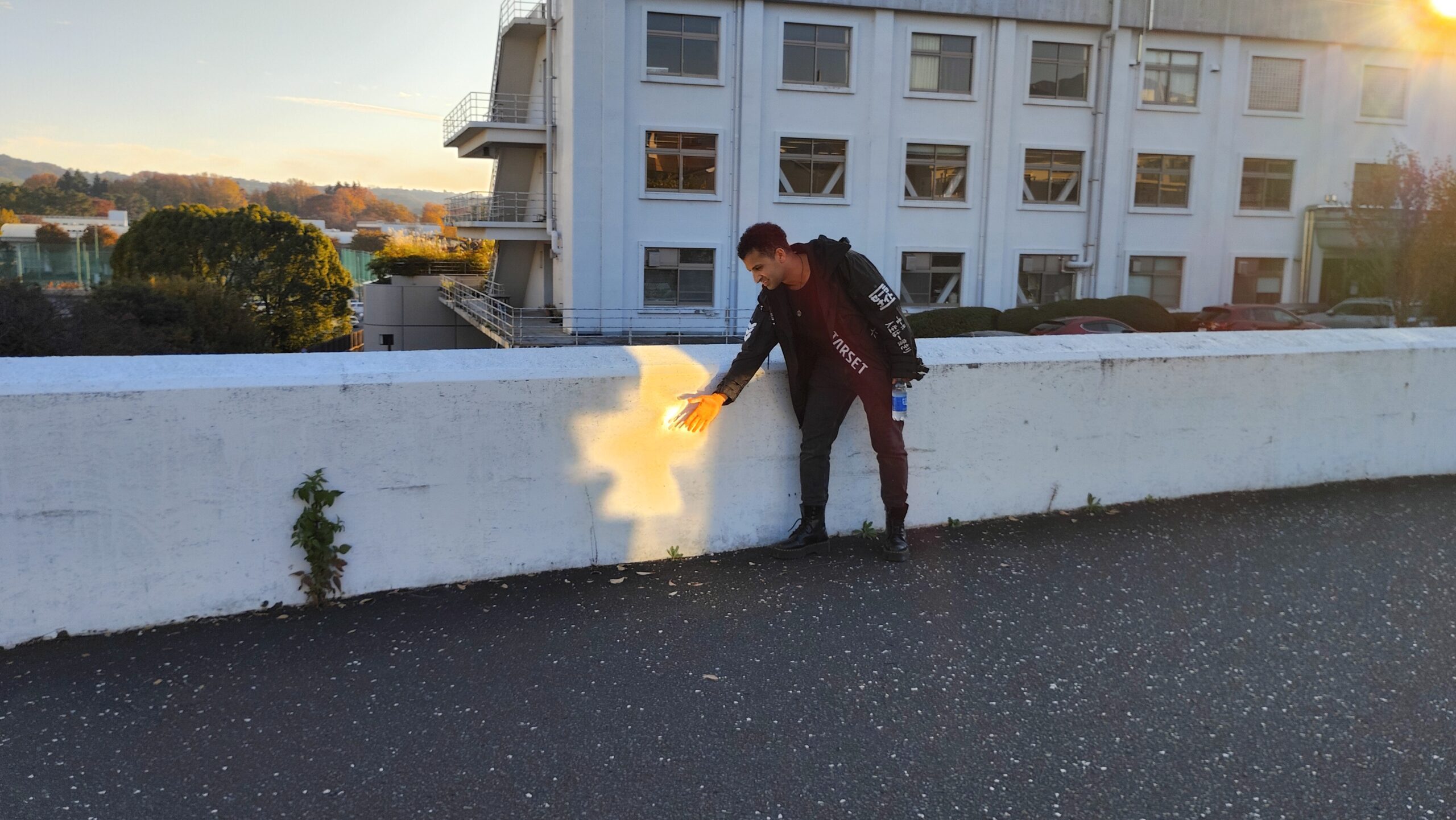 芸術学研究科の学生が鏡を使った光のアートの実験を行いました