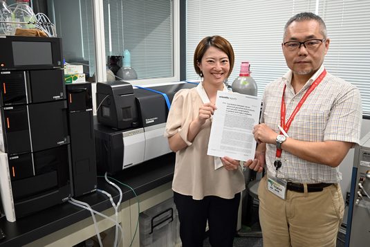 加藤さんは、「糖尿病や血管合併症はある程度進行してから見つかることが多い病気です。採血をして血糖値の指標であるヘモグロビンの量を測るように、将来的には健康診断などでAGEsの数値を測り、発症のリスクを見極めて生活習慣の改善といった予防につなげられればと考えています。AGEsは種類によって処理工程が異なるので果てしない作業でしたが、国内では阿蘇くまもと臨空キャンパスにしかない分析装置や技術を使って研究することができました」と語ります。永井竜児教授(農学部食生命科学科)のもとで本プロジェクトに励んできた2年半を振り返り、「検体を提供してくださった方々や研究を進めるためにアドバイスをくださった皆さんのおかげで論文掲載にいたりました。私一人の力では成しえなかったこの成果を生かし、AGEsを病態のバイオマーカーとして利用実現に向けてさらなる研究発展につなげていきたい」と意気込みを語りました。