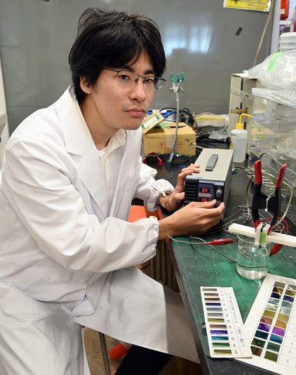 大須賀さんは、柔らかく灰色で結晶質の「ニオブ」板を電気化学的に酸化(陽極酸化)させ、表面に透明なニオブ薄膜を設けて光の反射によって色が変化するメカニズムを研究し、不可視二次元コードの制作に取り組んできました。「二次元コードを印刷したニオブを36Vと56.5Vで2度にわたって陽極酸化することで背景と同じ色相になり、目では見えなくなります。しかし赤外光領域では二次元コードと背景の反射率が異なるため、コントラストが生じて検知可能になります」と話します。情報理工学部の前田秀一学部長(情報メディア学科教授)の研究室に所属し、「先輩が長年にわたって取り組んできた研究を引き継ぎ、今回初めて国際学会で成果を発表できました。企業の技術者の方々とも意見交換でき、とても貴重な経験になりました」とコメント。不可視二次元コードは商品パッケージなどに付与することで偽造を防ぎ、商品管理などへの応用も期待されるほか、パッケージのデザインを損なわないといった利点があります。「近年、需要が増えている半導体に製品番号を印字して偽造を防ぐなど、アイデア次第でさまざまな商品に応用できます。今後も研究を続け、よりよい成果を出していきたい」と話していました。