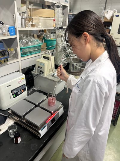 新部さんは現在、金属酸化物の微粒子を薄片状粉体に被覆した機能性材料の合成について研究しています。今回の受賞は、金属酸化物である酸化セリウムを表面が平滑でさまざまな薄片状の粘土鉱物に被覆・複合化する簡単な合成法を見出し、その合成条件や特徴についてまとめた成果です。新部さんは、「学部4年次生の時から研究室に所属し、地道に実験を続けてきたことが学会発表で評価されてうれしく思います。指導教員である樋口先生や松前先生をはじめ、多くの先生方や技術職員の皆さんにサポートしていただき実験技術や専門知識を学んできました。これまでの研究生活で得られたことを生かして、今後もますます社会で活躍できるように努力していきたい」と話しています。