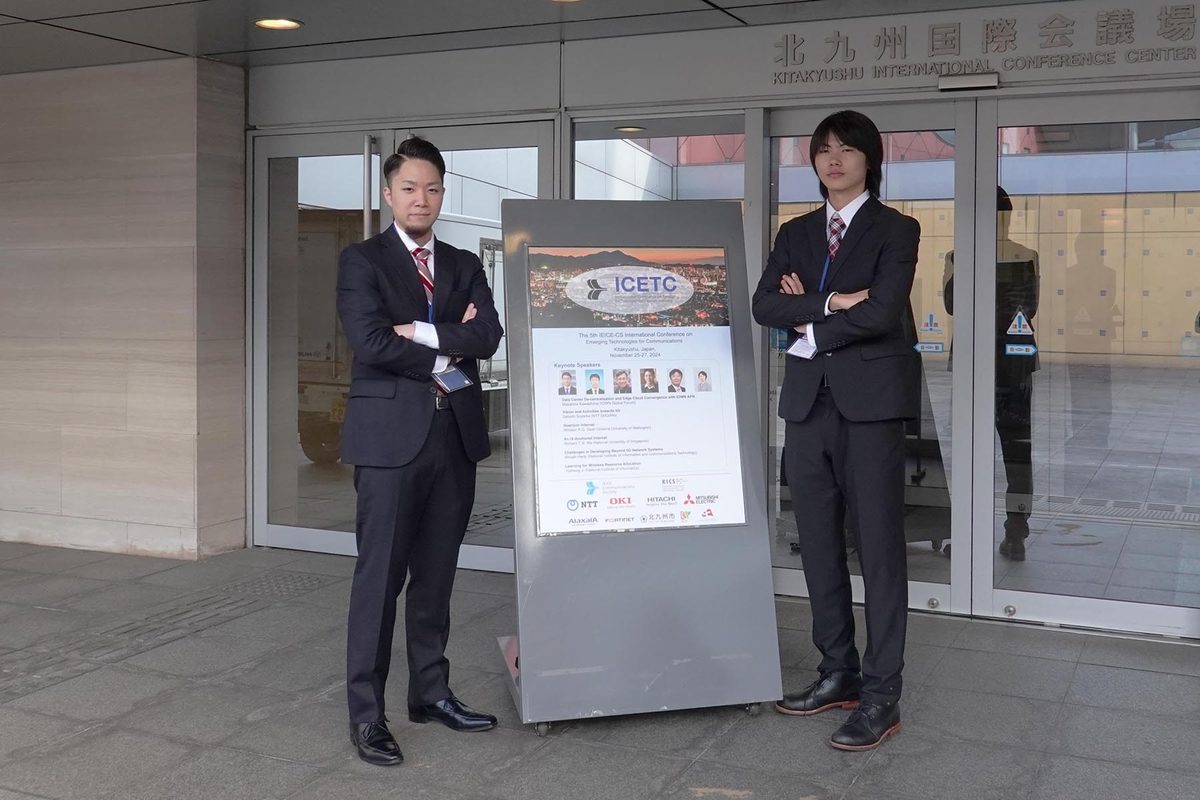 大学院 情報通信学研究科 修士課程2年の須賀裕哉さんと同1年の猿田裕樹さんが共著で投稿した英論文が、国際会議ICETC2024 *1) に採択されました。また、11月25日〜27日に北九州市で会議が対面開催され、筆頭著者である須賀さんが英語で口頭発表を行いました。