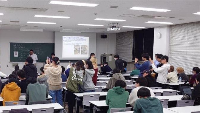 海上輸送に関するデータサイエンスの研究も、フランスで研究を行うための奨学金の話も、初めて聞くことばかりでしたが、参加した教員と学生はみな興味を示し、活発な質疑が行われました。内部の研究者による講演とは違い、異なる研究分野と視点からの話を聞くことができ、とても良い研究交流会になりました。今後も外部の研究者をお迎えして研究交流会を開催する予定です。