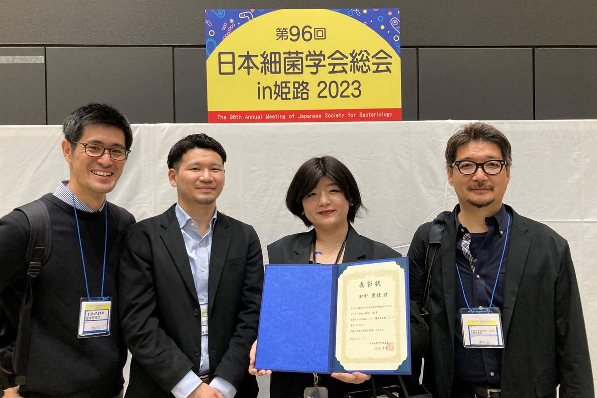 大学院医学研究科先端医科学専攻(博士課程)2年次生の田中里佳さんが、3月16日から18日まで兵庫県で開催された第96回日本細菌学会総会で「クローン病関連大腸菌のcyclic-di-AMPシグナルの亢進」をテーマに研究成果を発表し、「優秀発表賞」を受賞しました。