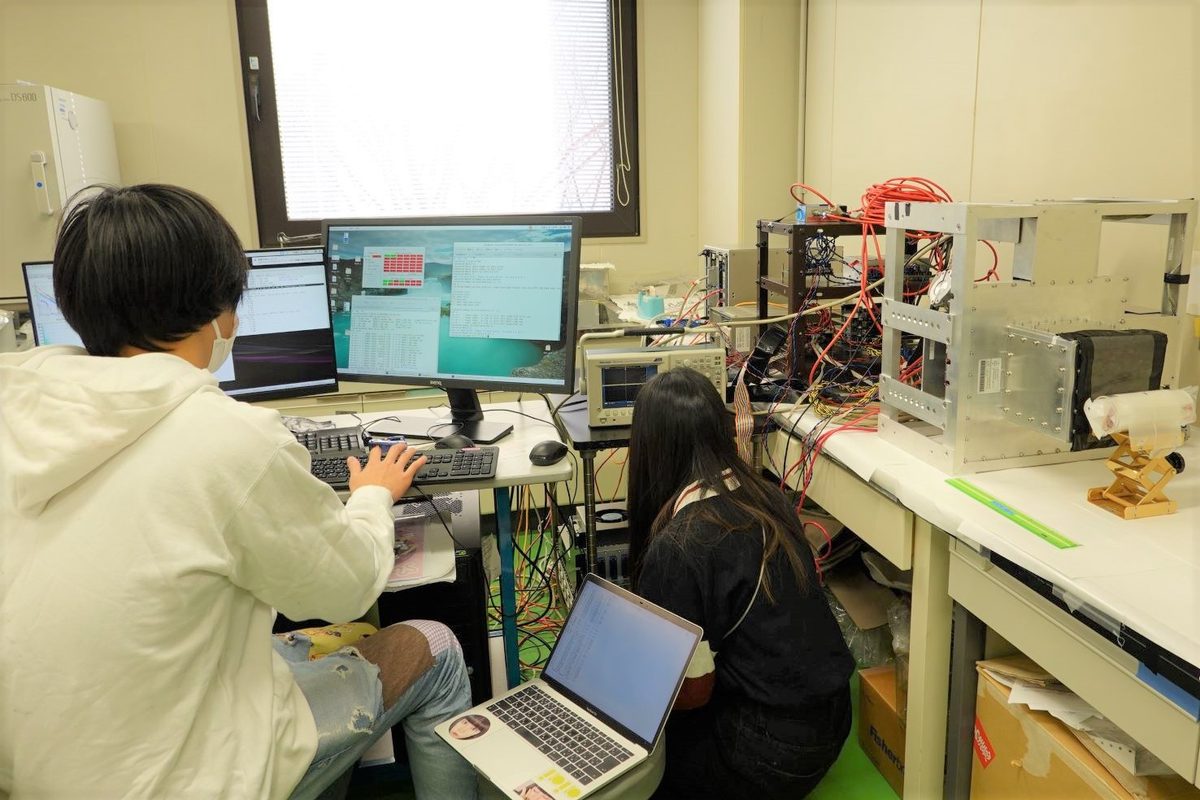 株木講師は、「遠藤さんの学会発表は論旨が明解で、質疑応答も質問者の意図をしっかり理解して的確に回答していました。そうした対応も評価されたと思います。学部生時代から高いモチベーションで研究に臨んでおり、その姿勢は今も変わりません。医療機器のゼロからの開発は得難い経験です。ぜひ今後に生かしてほしいと思います」と激励。櫛田教授は、「ETCCを用いた撮像実験に繰り返し参加するなど、遠藤さんは今回の成果に大きく貢献しています。学部生時代から明確な目標を持って研究に挑み、先輩からの教えを受け継いで献身的に後輩を指導する頼もしい存在でした。研究室の伝統を守り、盛り上げてくれる先輩としても期待しています」と話していました。