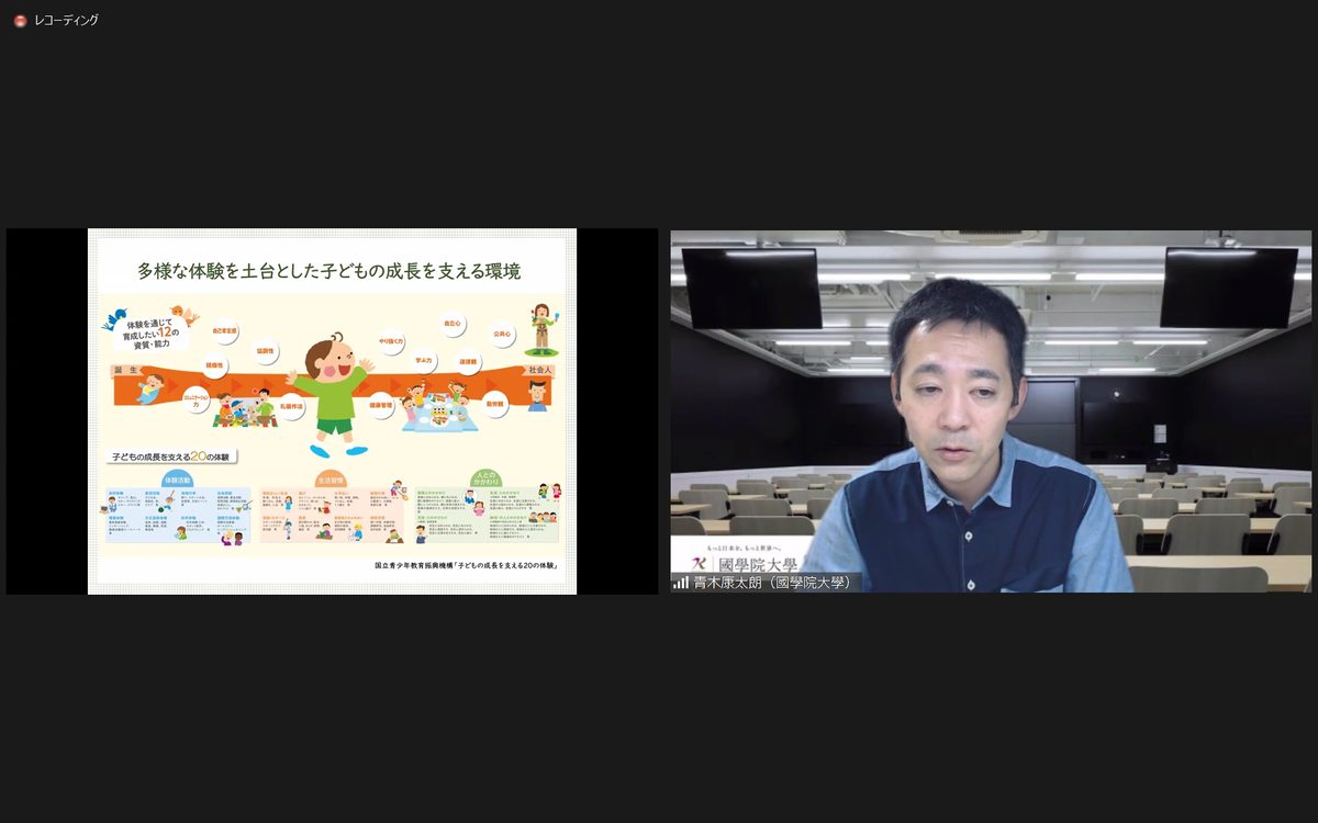 大学院体育学研究科では11月10日に、「2022年度第2回健康・スポーツ科学セミナー」をオンラインで開催しました。このセミナーは、学内外から健康やスポーツ科学の専門家を招き大学院生や教職員に知識の幅を広げてもらおうと、年に3、4回開催しています。今年度は新型コロナウイルス感染症の拡大により、WEBビデオ会議システム「Zoom」を用いてオンラインで実施。今回は國學院大学人間開発学部准教授の青木康太朗氏が「かわいい子には体験を!~すべての子どもが豊かな体験を享受できる社会を目指して~」と題して講演し、大学院生や体育学部の学生、教職員ら約50名が参加しました。