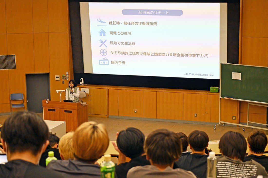 松浪教授は、「スポーツを通して得てきた経験を他の人に伝えるコーチングスキルなど、体育学部の学生は、実は自分が気づいていないだけですでに海外で活躍するスキルを持っている人が多くいます。実際、毎年2、3人の学生や卒業生が青年海外協力隊に協力しています。皆さんはきっかけ、考え方一つで、海外で活躍ができる可能性を覚えておいてください」と呼びかけていました。