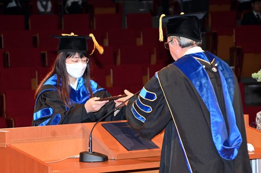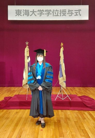 川島さんは「企業での開発と大学での研究はあまりにも異なり、戸惑う事が多い中、指導教員の高雄教授は丁寧、かつ常に前向きにさまざまなことを教え、体験させてくださいました。厳格な論文審査、学位審査の過程で多大なご支援、温かい言葉をくださいました高雄教授、審査員の先生方、研究科長、研究科の関係者の皆さまには、一言では言い表せないくらい感謝しています。この貴重な体験は、私の人生に彩りをくれました。共に研究をした学生の方々、学位への挑戦を理解してくれた会社、家族にも、お礼申し上げます。研究の恩は研究で返すと教えてくださっている高雄教授のもとで、これからも東海大学の学位に恥じない研究を、東海大学で学生の方々と進めていきたいと考えています。ありがとうございました。」と語っています。