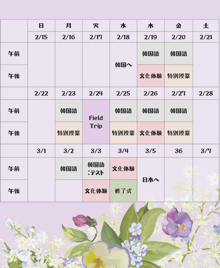 ・漢陽大学より送付された2025年度夏季短期留学プログラムのスケジュール(参考まで):