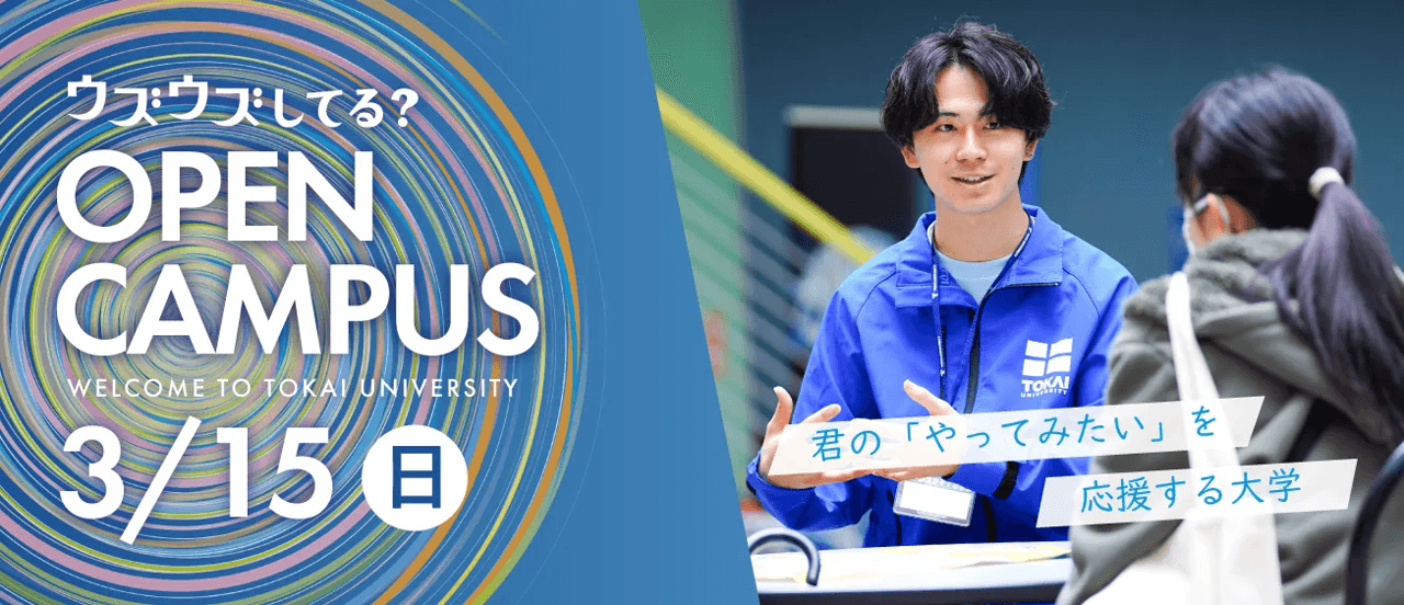 2027年度入試より年内の特待生試験を新設予定!2026.02.28 23学部62学科・専攻の幅広い学びを有する東海大学では、さまざまな受験方式を用意しています。もっと「学びたい気持ちや夢の実現を応援したい」と考え、2027年度入試では年内に特待生奨学金にチャレンジできる受験方式を新設する予定です。 新制度についての詳しい情報は特設サイトへ シン・特待生試験 特設サイトへ 3月15日(日)のオープンキャンパスで新制度「プレトク」について紹介予定です。新年度版 大学案内の先行配布も行います!