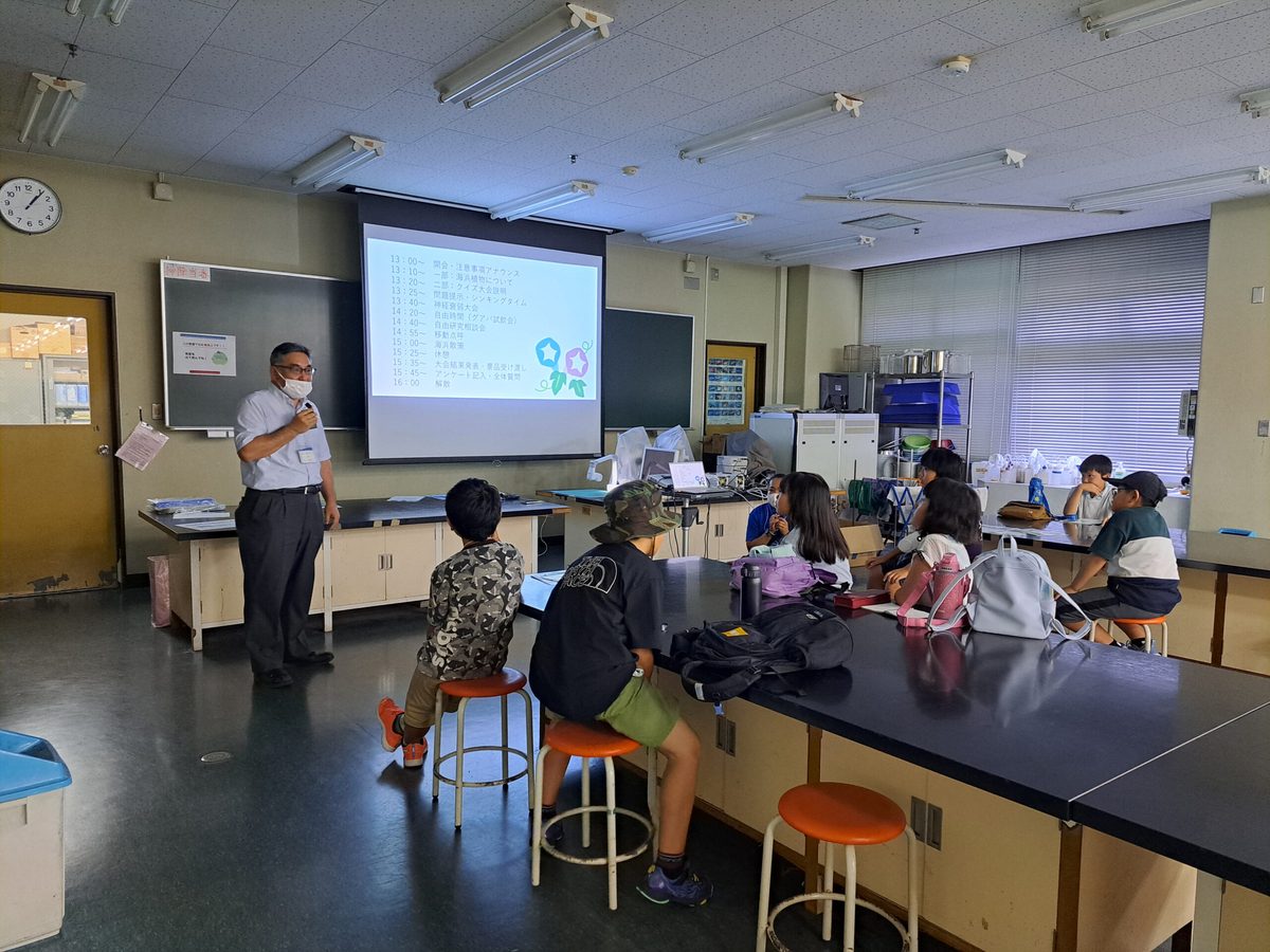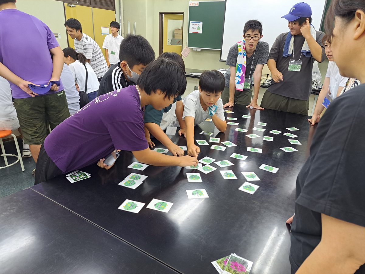 運営を担当した学生たちは、当日に向けて説明スライドや資料の準備を担当。解説を担当した海洋学部環境社会学科4年次生の小形蓮太郎さんは、「小学生に向けた解説は緊張しましたが、とてもやりがいを感じました。小学生が私の話よりもゲームの方に楽しそうに取り組んでいて少し悔しかった」と笑顔で振り返り、「この経験を今後に生かしてもっと上手な解説ができるようになりたい」と話していました。