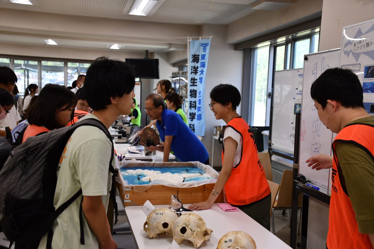 学科展示では学生と参加者が研究内容について話し合う姿や、個別相談コーナーでは、入試の内容、一人暮らしについて、キャンパス間留学、他学部・他学科履修の制度、東海大学独自の奨学金制度などさまざまな質問が寄せられました。また、昼食タイムには学生から人気の焼き立てパンも振る舞われ、参加者の皆さんからはとても好評でした。