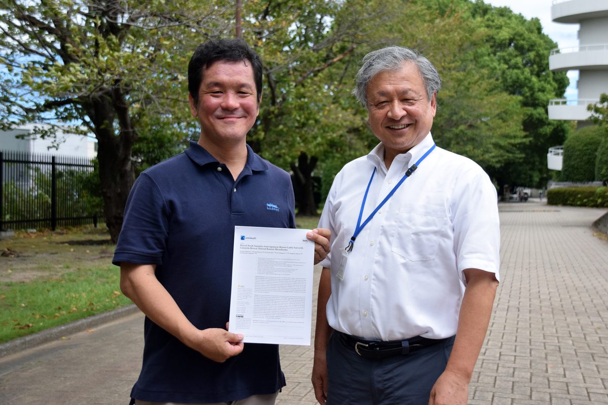 阿蘇の大噴火によってできたカルデラに蓄積したミネラル豊富な天然鉱物「阿蘇黄土(リモナイト)」は牛の健康や発育を改善するとされ、阿蘇地域では昔から妊娠後期の牛に与えられてきました。しかし生体内におけるメカニズムが解明されていないことから、原川さんは、「農家の方々に納得して、安心して使ってもらえる情報を提供したい」と研究に着手しました。具体的には、妊娠後期の褐毛和牛(あか牛)にリモナイトを与え、30日ごとに口腔内からサンプルを取って分析。特定された微生物叢(そう)を6つのクラスターに分類して解析しました。論文では、リモナイトの給餌が非コアルーメン微生物叢を活性化させるとし、妊娠後期に効果的であることを部分的に裏付けているとまとめました。原川さんは、「あか牛に関する日本語の論文は多くありますが、英語の論文は少ないので、こうした成果を国際誌発表できてうれしく感じています。しかし、今回の論文は研究の第一歩であり、まだまだ調査が必要です。現在は子牛の調査や、腸内細菌叢などの調査も進めています」と話しました。