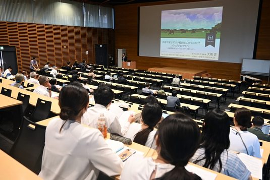 阿蘇くまもと臨空キャンパスで9月12日に、動物の行動と管理学会2024公開シンポジウム「アニマルウェルフェアの現在~市場・法律・報道の観点から~」が開催されました。11日から13日まで開かれた同学会2024年度大会の一部として企画されたものです。アニマルウェルフェア(AW)は、最終的に食べ(殺し)てしまう動物に対しても、生きている間のストレスや幸福に配慮する思想で、科学的に動物の状態を定量化して飼育環境を考える取り組みです。日本でも農林水産省がAWの考え方を踏まえた飼養管理の普及を推進し、昨年7月には新たな指針も公開されています。
