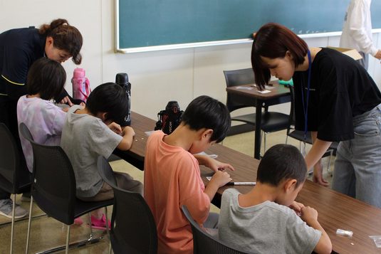 プロジェクトリーダーの喜田川将矢さん(文理融合学部3年次生)は、「普段は消極的な子も、このイベントには積極的に参加したいと言ってくれたと職員の方から聞き、開催してよかったと感じました。ゲームのプログラミングを組むなど準備は大変でしたが、子どもたちと話すのも教えるのも楽しく、何より笑顔を見られてうれしかった。今後も地域の科学イベントや小学校での出前授業などを控えているので、科学の面白さを伝えていきたい」と話していました。