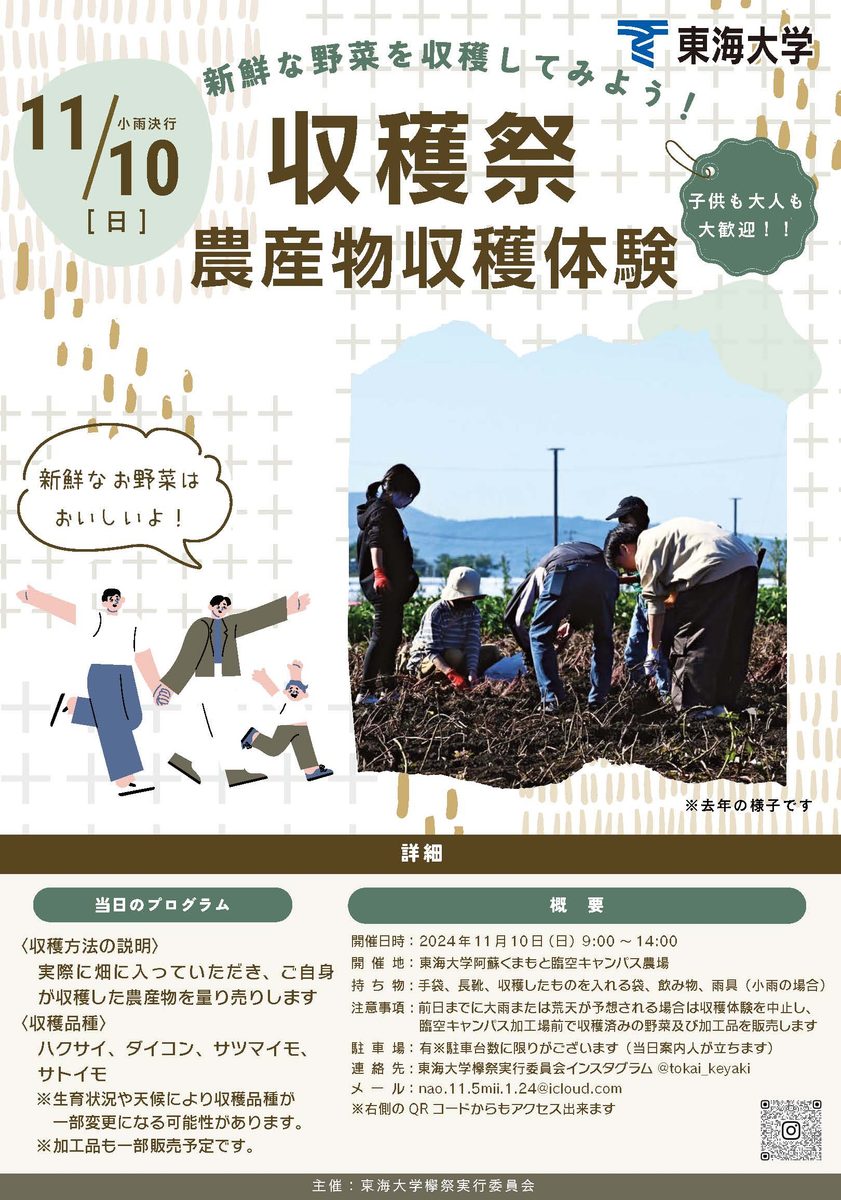 また、2023年度4月より開設された【阿蘇くまもと臨空キャンパス】にて、11月10日(日)に第2回収穫祭を開催いたします。多数のご来場をお待ちしております!!
