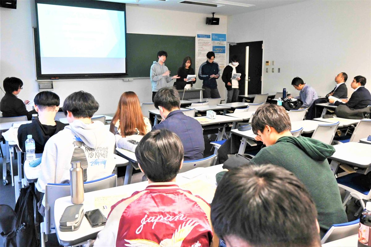 2回目の11月12日は、学生たちから東京都の職員に対し、AI・アプリ等のIT技術の活用、児童虐待の防止、進展する高齢化への対応などをテーマにプレゼンテーションが行われました。提案に対し、東京都の職員の方々からは多くの質問がなされ、学生たちは一つひとつ丁寧に答えていました。