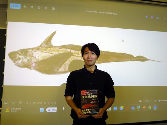 深海魚の魚類学を専門とする手良村助教は、29種の解説に加えてコラム「浅瀬に現れる深海魚の謎」の執筆を担当しました。掲載種の中には、手良村助教が2019年に和名を提唱した「アマノガワギンガエソ」や、2024年に新種として発表した「オオシロブチギンザメ」も含まれています。手良村助教は、「特に、最近発見された『新種』や『日本初記録種』が数多く収録されている点が見どころの一つです。奇抜な形態を持つ深海魚が多数紹介されており、分類や生態に関する情報も充実しています。深海魚好きはもちろん、多くの方々に手に取っていただきたい一冊です」と話しています。
