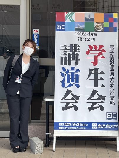 文理融合学部人間情報工学科3年次生の川人彩楓さんが9月25日に、鹿児島大学で開かれた電子情報通信学会九州支部2024年度(第32回)学生会講演会で講演奨励賞を受賞しました。学生の発表の場として開催されているもので、今回は151件の応募があり、優れた発表をした18名に同賞が贈られました。