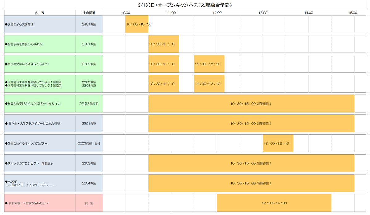 文理融合学部に関心をお持ちの方を対象としたオープンキャンパスです。