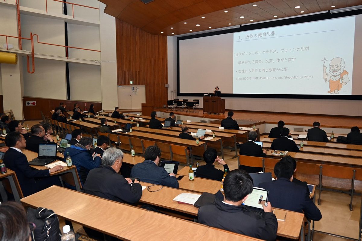 また、イギリスのパブリックスクール「ハロウスクール」元教師で、現在は鷗友学園女子中学高校の国際部でグローバル教育コーディネーターを務める松原直美氏が「リーダーを育てるスポーツ教育とは?~英国パブリックスクールでの実践例」と題して講演。総合的で多面的な全人教育を掲げるハロウスクールはさまざまなスポーツを実践する機会を設けていることに触れ、「能力別のクラスで学ぶため、劣等感を感じにくく、それぞれのレベルで向上できるという効果があります。スポーツを通してスケジュール管理やタイムマネージメント能力、マルチタスクの処理スキルなど、自己管理能力を育てることにもつながります」と説明しました。次に、医学部付属病院整形外科科長の酒井大輔教授が渡辺雅彦病院長とともに取り組んでいる「東海大学スポーツメディカルサポートについて」と題して報告。陸上競技部駅伝チームとラグビーフットボール部を対象に採血を行い、分析結果から肝機能や筋疲労、腎機能、栄養状態などについてフィードバックし、数値が徐々に上向いてきた状況などを解説しました。また、アスレティックトレーナーの育成支援、婦人科医師によるセミナーや採血検査といった「女性アスリートメディカルサポート」、教員と医学生による運動部の試合への帯同などのサポート体制と今後の計画についても説明しました。