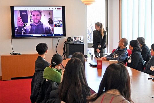 参加した学生たちは、「デンマーク特有の教育制度や音楽を知れて、より興味が湧きました」「いつか北欧に留学したいと考えているので、現地の人と交流できていい経験になった」「大使館内には北欧インテリアが置かれていて、現地の雰囲気を感じられました」を話していました。原田准教授は、「学生たちに現地の人とのリアルタイムの交流を通じて、文献だけでは体感できない北欧の文化に触れてもらいたいとワークショップに参加しました。“おすすめの日本の歌は?”の質問に対して、学生がおすすめの歌の好きなポイントや歌手の説明、その音楽を聴くと日本人がどのような気持ちになるか、といったことに機転を利かせて答えており、日ごろ教室内で見る姿とは違った一面も見られて非常に頼もしく思いました。今後の学びにつなげ、視野を広げてもらいたい」と語っていました。