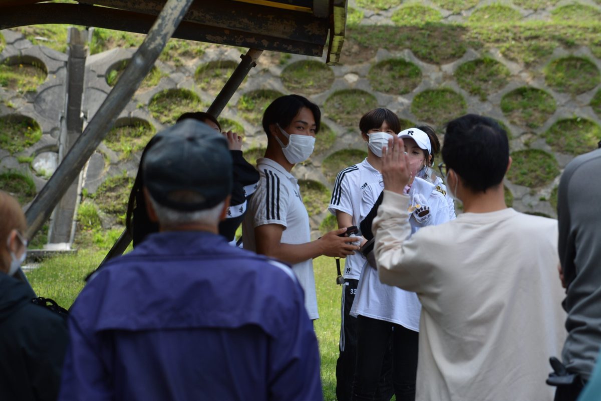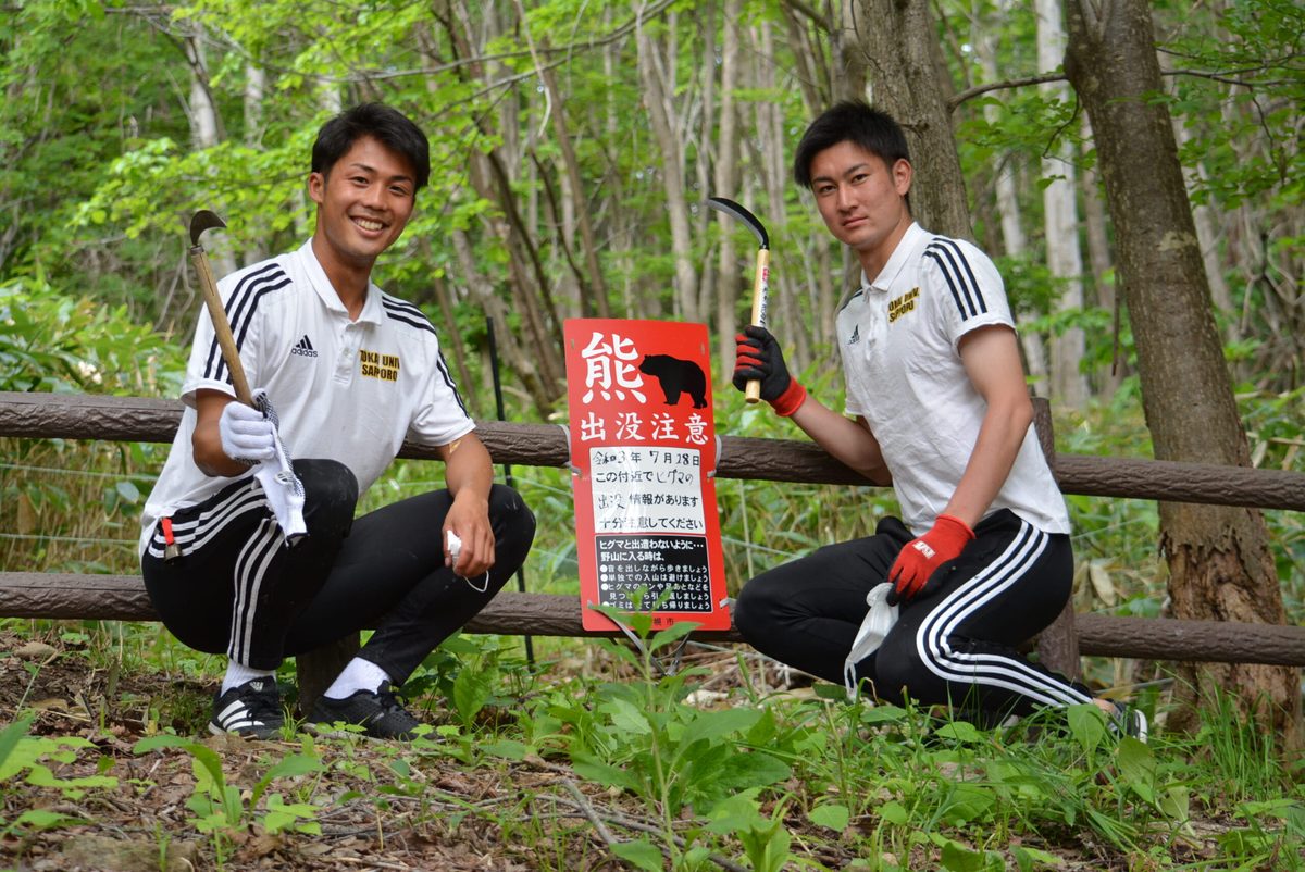草刈りプロジェクトの学生リーダー渡辺樹さん(国際文化学部 国際コミュニケーション学科4年次生・サッカー部所属)は「サッカー部は今年度より地域貢献部を立ち上げ、地域のためにできる活動を展開しています。危険だと思われているヒグマですが、共存を目指すため私たち学生ができることは沢山あります。重要なのはヒグマが人里に出没した後に対策をするのではなく、事前に適切な予防策を講じることです。今回の草刈りは、身を隠しながら移動する習性があるヒグマへの対策に有効であると言われています。また、食べカスがついたゴミを撤去することも重要です。今後も定期的なゴミ拾いなどを行い、駆除ではなく共存できる環境を整えていきたいと考えています」と語っています。