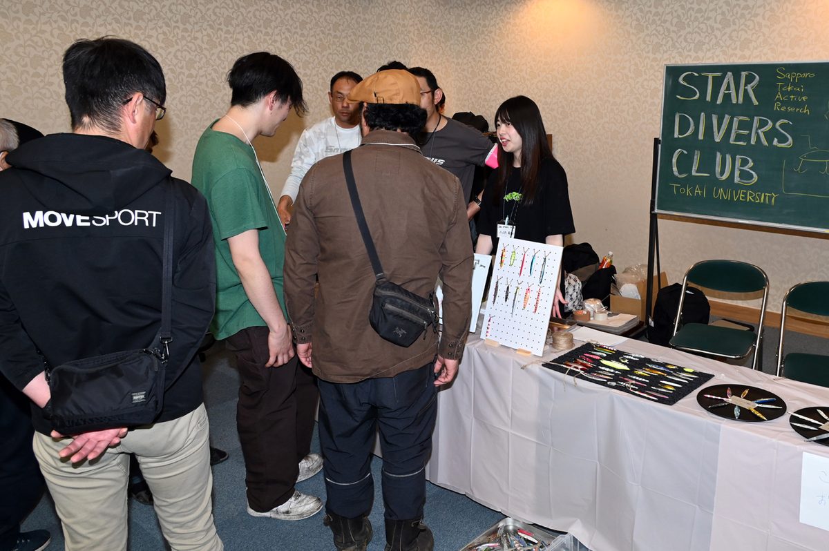 海を守るアングラーの集い実行委員の荒道俊さんは、「ダイビングの技術を環境保護に役立てたいと活動していると知り、一緒にできることがあればと考えて協力しました。商品化や販売場所の確保などこれからも連携していきたい」と話します。Star Divers Club代表の石川晃希さん(生物学部3年次生)は、「別のブースでハンドメイドルアーを販売していたプロのクラフトマンの方から“今度はぜひ一緒にやりましょう”と声をかけていただくなど、この活動へのやりがいを感じる機会になりました。一方で、ルアーのリペアはアングラーの集いの皆さんに頼りっぱなしだったので、もっと自分たちでやれることがあったのではないかと反省点もあります。来年度もこのイベントで成果を発表できるよう活動を後輩たちに引き継いでいきます」とコメント。副代表の金城早紀さん(同)は、「Star Divers Clubでは、ほかにも北海道クリーンアップ大作戦という清掃イベントに参加するなど、約50名のメンバーで活動の幅を広げていますが、『もぐって☆Reルアー』は活動の中核になる取り組みです。サークルを次につないでいくシステムの基礎となるよう今後もしっかりと取り組んでいきます」と抱負を語っています。