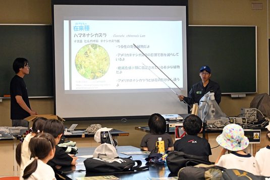 参加した子どもたちは、「大学生がわかりやすく説明してくれた」「海から戻ってきた後にやった海浜植物のクイズ大会では満点を取れました」と話していました。この企画を運営した竹田直哉さん(海洋学部4年次生)は、「小学生になるべく分かりやすい言葉で伝えようと意識しました。植物を観察しながら子どもたちがたくさん質問してくれて、興味を持ってくれているのが伝わってきてうれしかった」と話していました。
