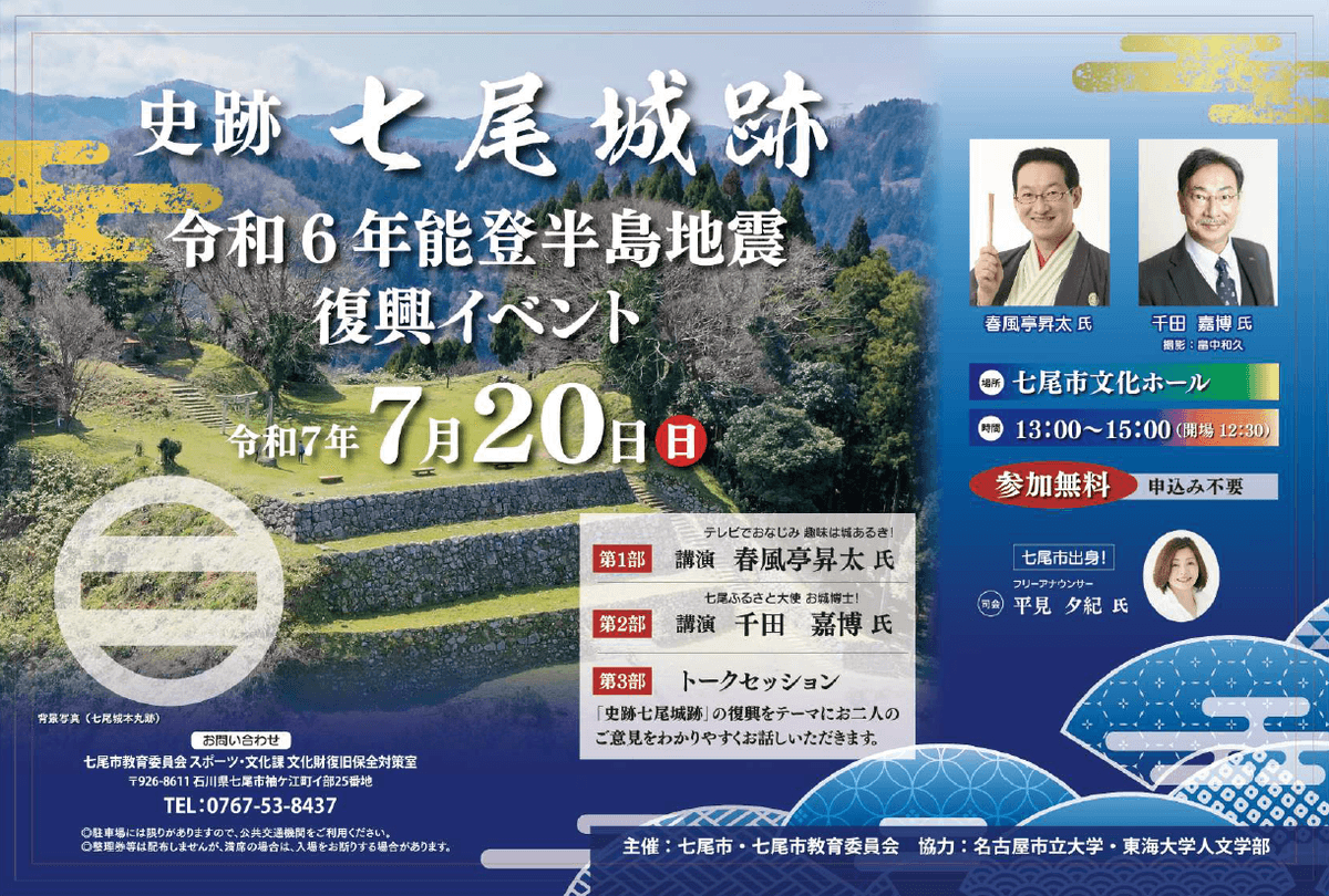 人文学部 千田嘉博客員教授が、史跡七尾城跡(令和6年能登半島地震復興イベント)で2025年7月20日(日)に講演します。