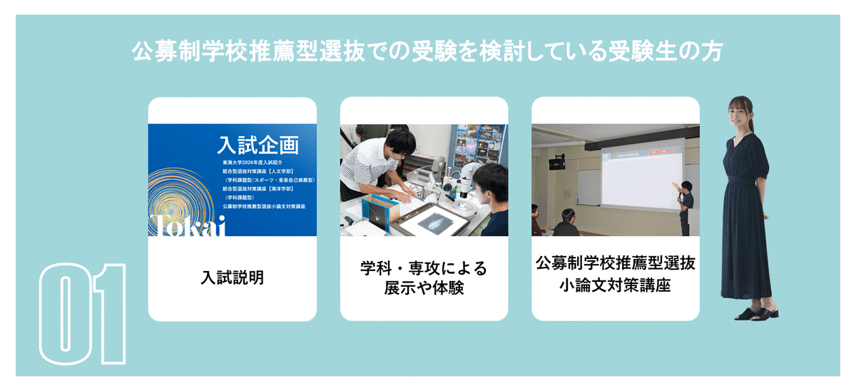 入試紹介だけでなく、総合型選抜や公募制学校推薦型選抜の対策講座も実施します。