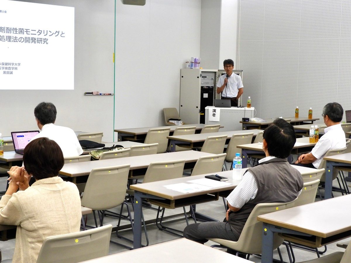 当日は「健康と水の未来を考える — PFASと薬剤耐性菌の現状、水環境の安全対策と課題」をテーマに、環境と健康のつながりを考える機会にしようと、本学農学部および熊本保健科学大学の教員による講演が行われました。