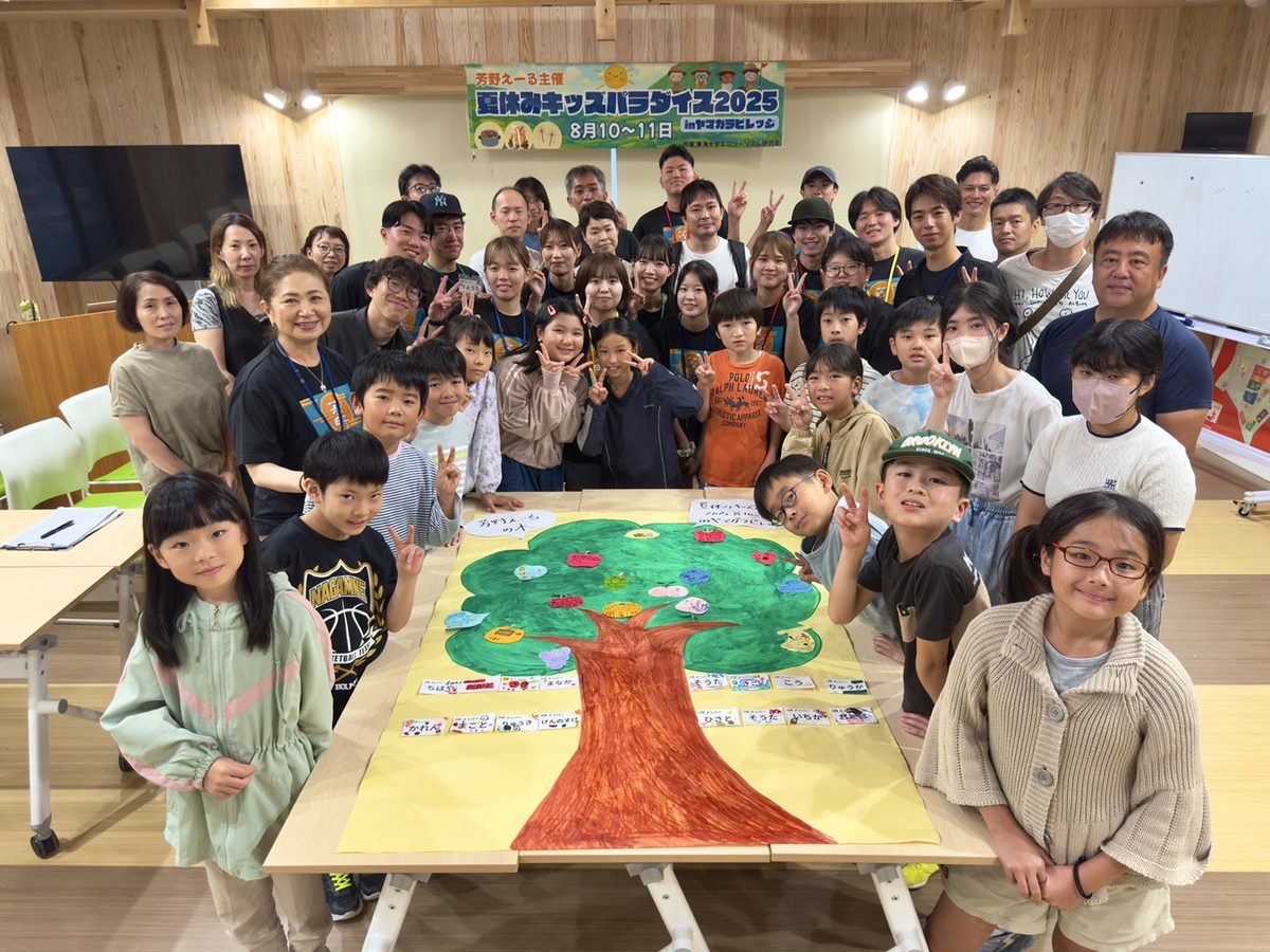 熊本キャンパスで活動する「エコツーリズム研究会」が8月10、11日に、熊本市西区のヤマガラビレッジ(熊本市立金峰山自然の家)で「夏休みキッズパラダイス2025」を開催しました。本研究会では、過疎化・高齢化が進む熊本市西区の芳野地域を盛り上げようと、2014年から活動をスタートし、2022年には地域住民と共に地域応援団「芳野えーる」を組織。今回の催しは、1泊2日のプログラムを通して子どもたちに地元での忘れられない夏の思い出をつくってもらおうと芳野えーる実行委員会学生部会として企画し、指導する小林寛子客員教授(芳野えーる実行委員会事務局長)とともにプログラムの準備を進めてきました。