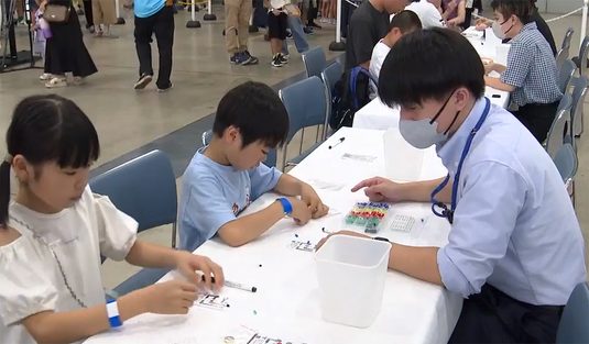 文理融合学部人間情報工学科の藤本邦昭教授と研究室の学生3名は、8月23、24日に、グランメッセくまもとで開催された「青少年のための科学の祭典」に協力しました。熊本県商工政策課から依頼を受けて、「半導体ってなに? ハンドウタイの未来とくまもとの未来」と題したブースを担当。半導体を使った電子回路づくりのワークショップを行いました。