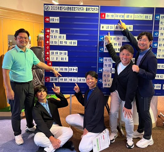 九州キャンパスゴルフ部の5選手が9月2日から5日まで、栃木県・烏山城カントリークラブで開催されたPGA資格認定プロテストの最終プロテストに合格しました。4日間72ホール・ストロークプレーで行われた今回の最終テストでは、49位タイまでの58選手がプロゴルファーの資格を獲得。九州ゴルフ部主将の遠藤崇真選手(文理融合学部4年次生)と卒業生の内藤滉人選手(経営学部2023年度卒)、中野惠將選手(同25年度卒)が2アンダーの278で15位タイ、平井伸乃輔選手(同23年度卒)が1アンダーの279、山田玄彩選手(同)がイーブンパーの280で24位タイとなりました。