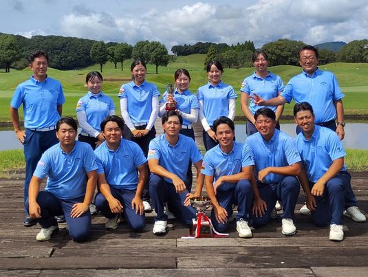 九州キャンパスのゴルフ部が9月17、18日に、佐賀県・若木ゴルフ倶楽部で開催された団体戦の九州学生リーグ戦で男女共に優勝しました。同大会は両日ともに5選手が出場し、上位4選手の合計ストローク数で順位が決定します。