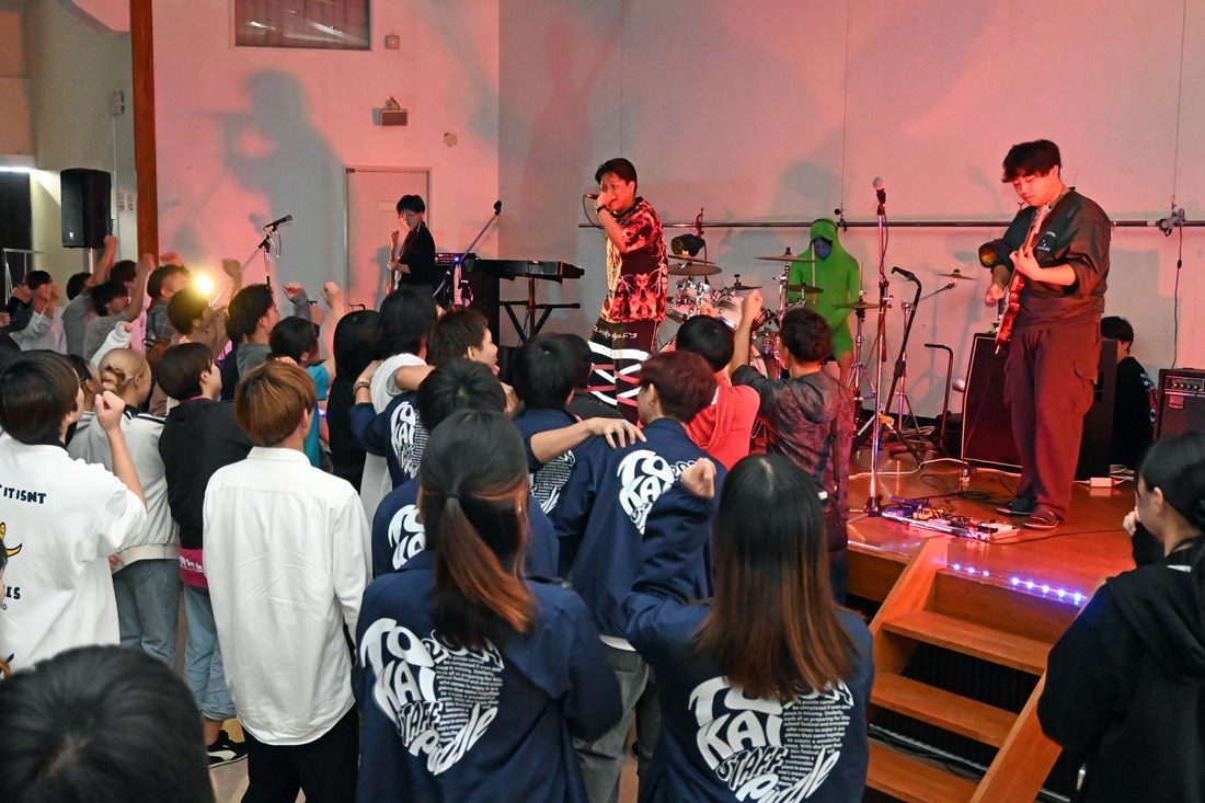 1日(土)は地域住民も参加可能な「スポーツフェス」や豪華景品が当たる「ビンゴ大会」を開催。2日(日)は音楽系サークルや吹奏楽同好会による演奏、カラオケ大会といったステージ企画が盛りだくさんです。3日(月・祝)は午前9時から毎年人気の「農産物・加工品販売」を行うほか、バトントワリングやキッズダンスなど地域の団体によるステージ、「大西ライオン」「ニッポンの社長」「メンバー」による芸能人ライブ、学生による仮装大賞なども企画しています。3日間とも研究室や部活・サークルによる模擬店が並び、「模擬店人気投票」といった新しい企画も用意しています。