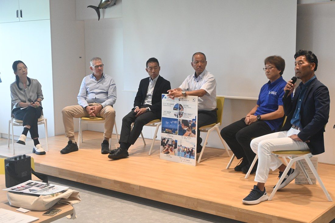 後半のトークセッションでは、李准教授とパーベス氏に加え、海洋学部の平塚聖一教授、一本釣り漁業を営むいとう漁協の竹安建氏、焼津水産高校の籾山誉人教諭、国際協力機構(JICA)の田村實氏が登壇。また、静岡県水産・海洋局の吉野晃博氏、MEL協議会の加藤雅也氏もコメンテーターとして加わり、それぞれの立場から一本釣り漁業の持続可能性について議論を深めました。