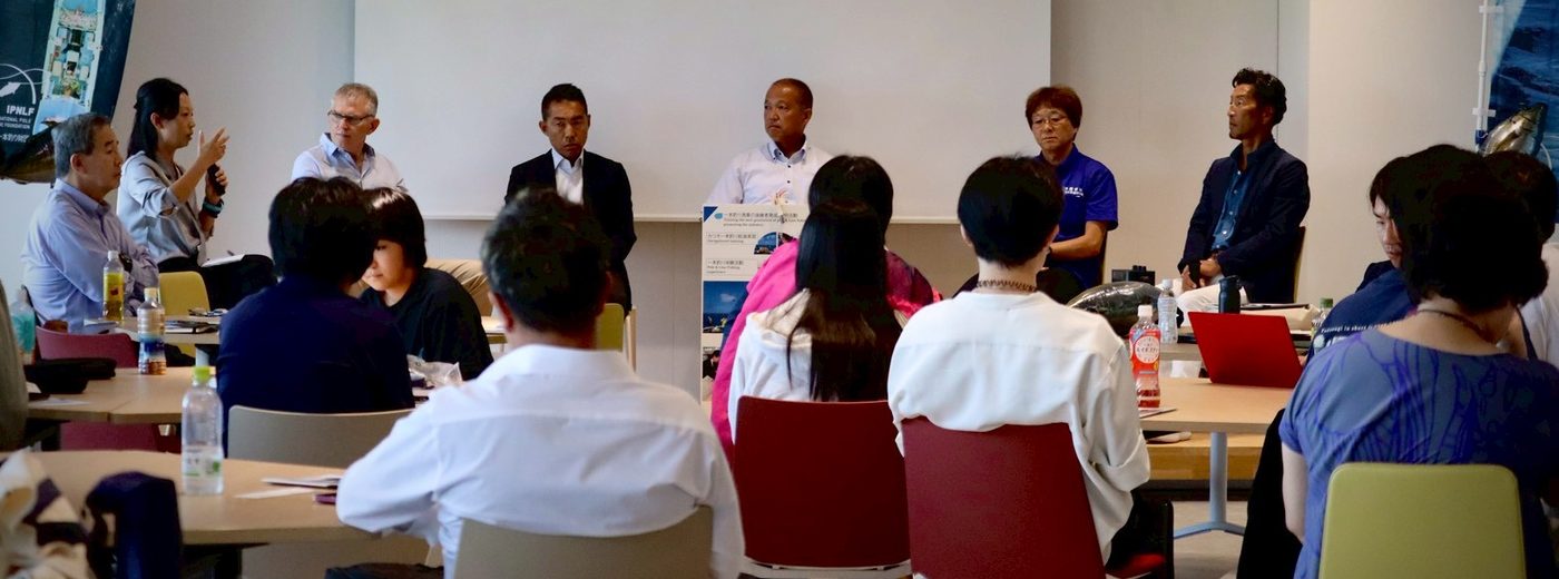 静岡キャンパスで10月5日に、国際一本釣り財団(International Pole and Line Foundation:IPNLF)によるセミナー「一本釣り漁業の意味を再認識する」が開かれました。海洋学部の李銀姫准教授が理事を務めるIPNLFは、漁業の持続可能性の実現に向けて、一本釣り漁業や小規模漁業を支援する国際チャリティ団体です。一本釣り漁業(手釣りやトローリング漁法等も含む)は国際的に規模が小さいため、市場流通へのアクセスが難しく、政策決定の場においても除外されるなど多くの課題を抱えています。漁業者の生活が危機的状況に陥ることもあり、その支援が急務となっています。今回のセミナーは、IPNLF常務理事のマーティン・パーベス氏の来日に合わせて開催されたもので、日本における小規模漁業の管理や支援、漁村の活性化等に関する政策や仕組みを学び、今後の世界的な小規模漁業支援に生かすことを目的としています。