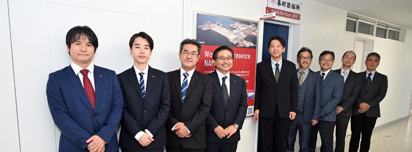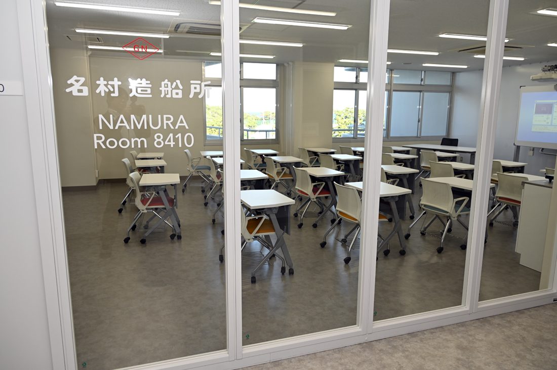 本学初のネーミングライツ事業契約を名村造船所と締結し「NAMURA Room 8410」教室がオープンしました