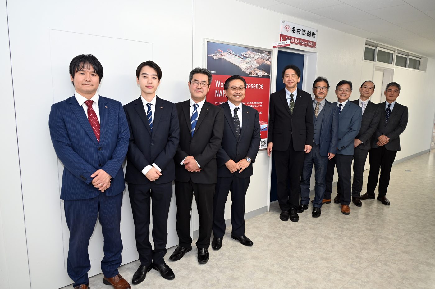 本学初のネーミングライツ事業契約を名村造船所と締結し「NAMURA Room 8410」教室がオープンしました