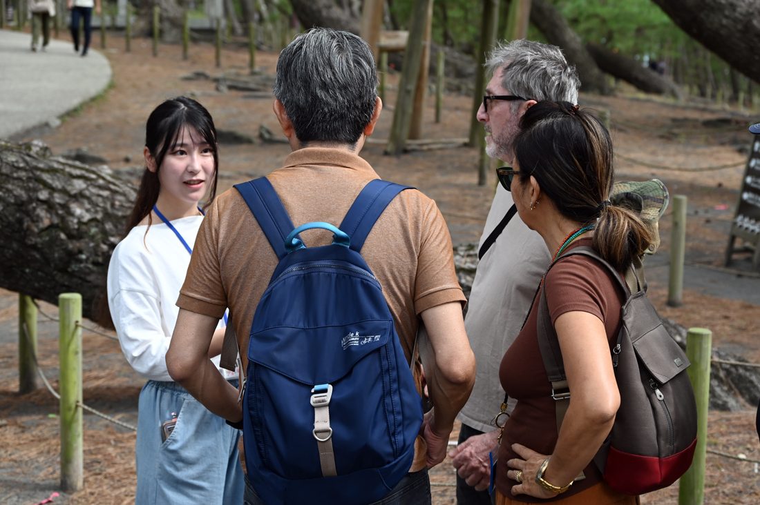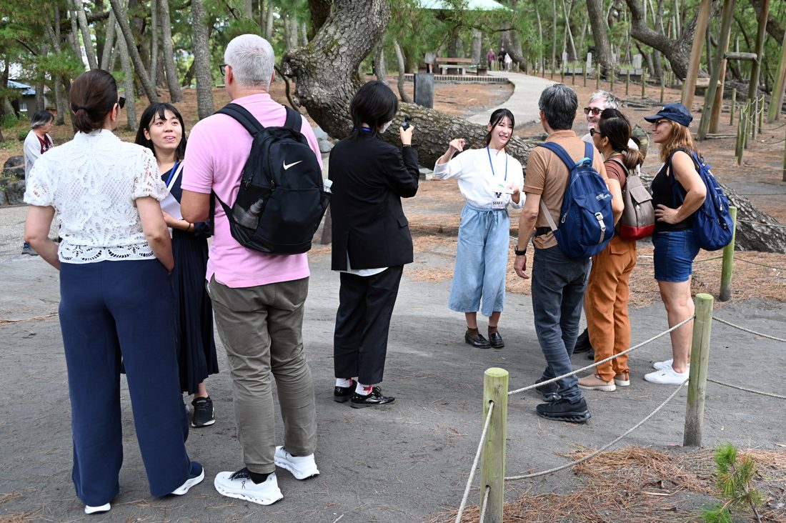 参加した後藤彩香さん(海洋学部2年次生)は、「茶道を意味する『tea ceremony』という言葉が外国人の方には違う解釈をされているようで、会場に来ていただくために英語で意味を伝える難しさを感じました」と話し、川瀬彩さん(同)は、「写真を撮るのが好きなので記録係を務めました。今日の様子を動画にまとめて紹介したいと考えています」とコメント。二人は、「将来は英語を生かした職業につきたいと考えているので、このような経験を生かしていきます」と話していました。加藤准教授は、「羽衣ホテルさんからお声がけいただき、高大連携で地域連携活動を実践するとともに、美しい庭園を眺めながら抹茶を楽しみ日本文化に親しむ機会を観光客の皆さんに提供できたと感じています。今後も、地元の皆さんとも協力しながら学生の実践活動を続けていければ」と話しています。