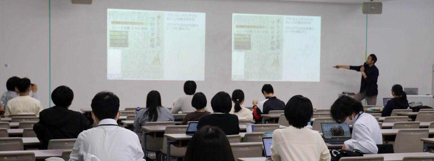 鯉沼講師は専門である植物病理学について「植物の病気の原因を理解し、防除につなげる学問」と説明。オレンジが高騰する原因になったカンキツグリーニング病を例に挙げて、植物、病原体、昆虫の三者間相互作用の複雑さを解説しました。また、自身の研究として、病原体「ファイトプラズマ」の昆虫媒介機構の解析や、農業現場での診断技術開発、ソロモン諸島での疫学研究などを紹介しました。